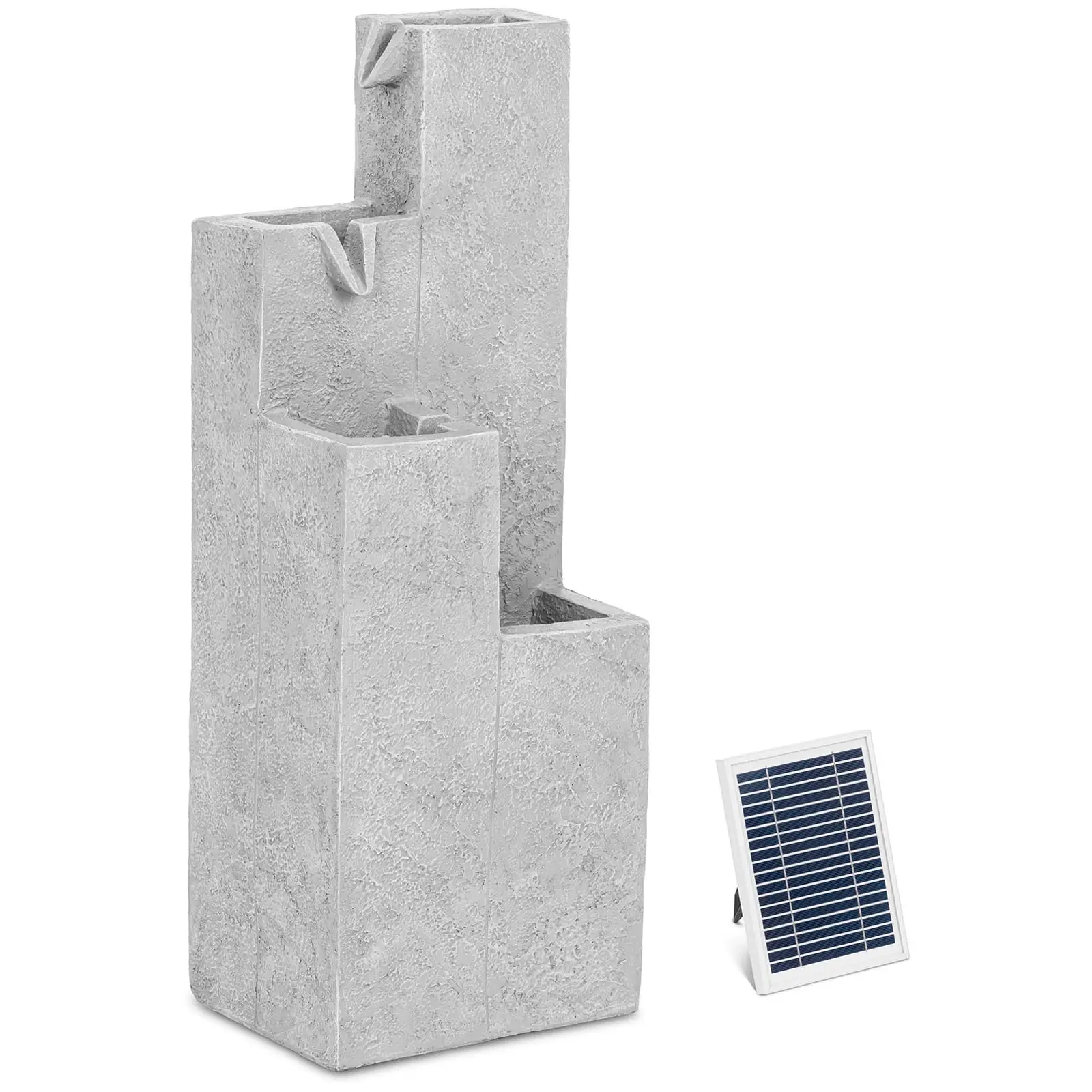 Der Kaskadenbrunnen ist aus Polyresin gefertigt. Das Material ist nicht nur wasserfest, sondern auch äußerst stabil und langlebig, sodass Ihr Gartenbrunnen jeder Witterung standhält. Für einen sicheren Betrieb im Außenbereich ist die wasserfeste Pumpe mit der Schutzklasse IPX8 ausgestattet, die Solarzellen sind dank der Schutzklasse IP44 vor Spritzwasser geschützt.