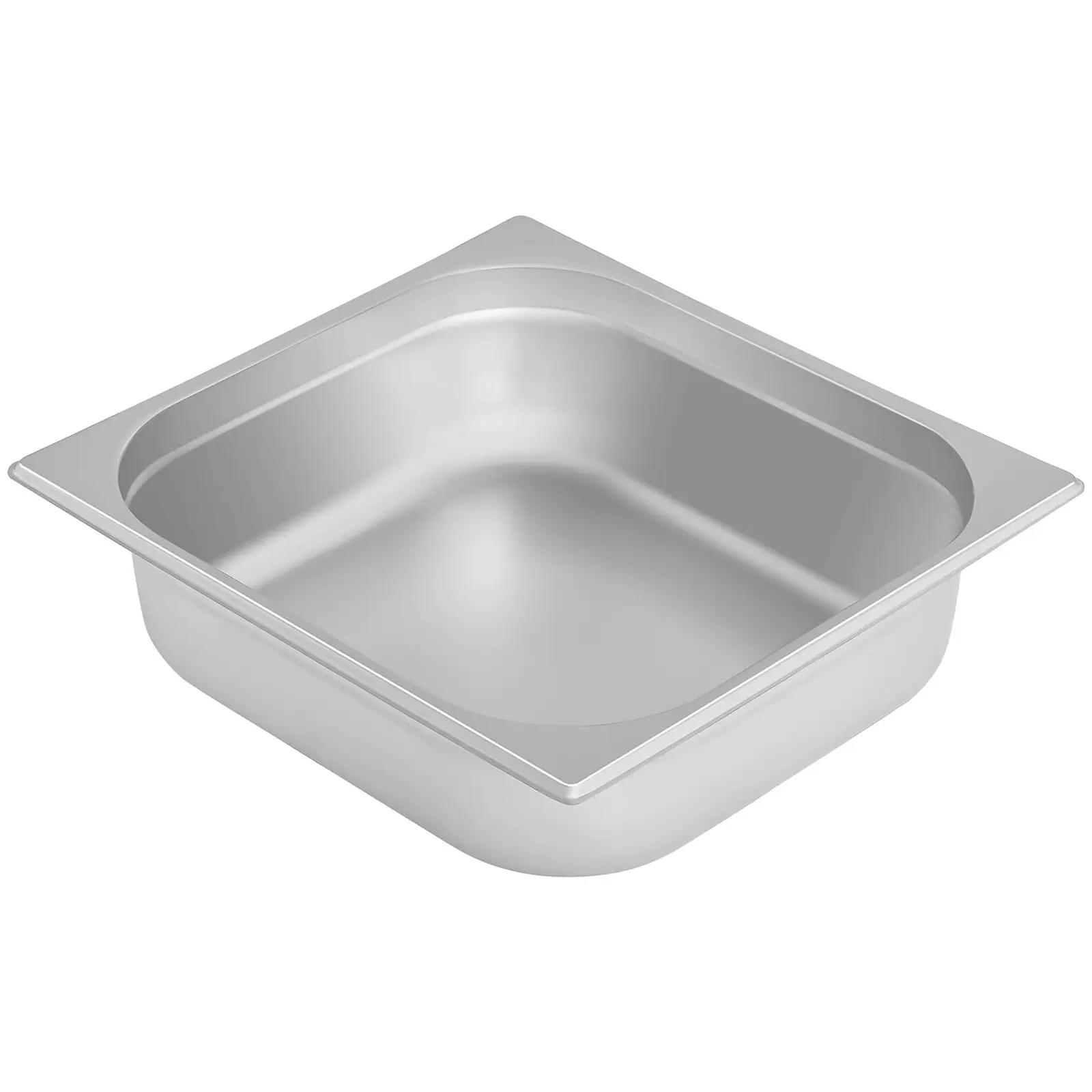 Zusätzlich ermöglichen Randprägung und die abgerundeten Bodenecken ein platzsparendes ineinander Stapeln mehrerer GN 2/3 Behälter, sowohl gleicher als auch abweichender Tiefe, ohne das die gestapelten Behälter aneinander festkleben.
